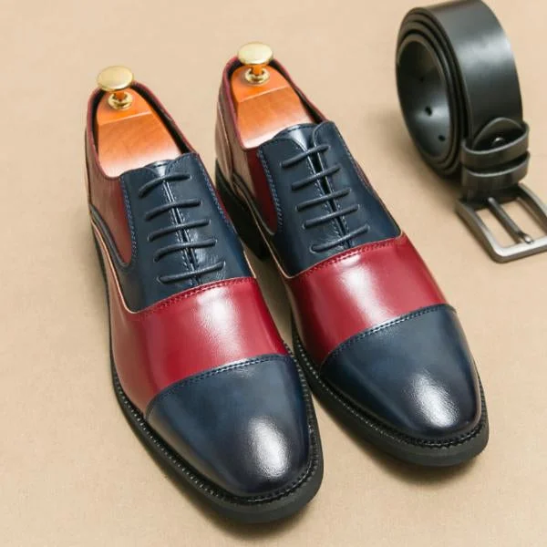 The Men's Business Contrast Color Spliced Dress Shoes are a stylish and sophisticated choice for any professional wardrobe. Featuring a sleek design with bold contrast color accents, these shoes add a modern twist to a classic dress shoe style. The sharp contrast between colors brings a unique flair, making them ideal for both business and semi-formal occasions.