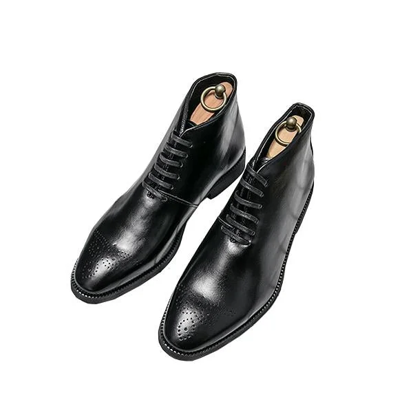 Men's Business Lace-Up High-Top Leather Shoes combine the classic charm of dress shoes with the contemporary edge of high-tops, making them a versatile choice for the modern professional. Crafted from high-quality leather, these shoes feature a sleek, polished finish that exudes sophistication and elegance. The lace-up design provides a secure, adjustable fit, while the high-top silhouette offers additional ankle support and a unique visual appeal. Ideal for both formal and semi-formal settings, these shoes pair well with tailored suits, dress trousers, or smart-casual attire. The cushioned insole ensures comfort throughout the day, and the durable rubber sole provides excellent traction and stability. Whether you're navigating a busy workday or attending a special event, these high-top leather shoes offer a stylish and practical solution for elevating your business wardrobe.