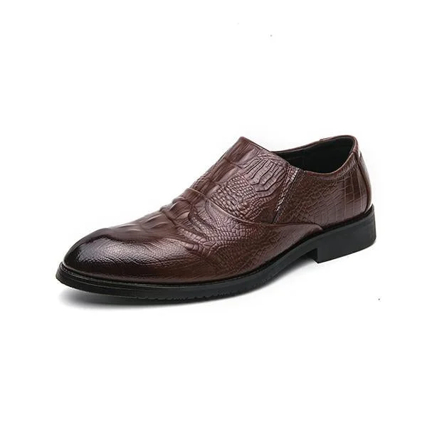 The MEN'S CROCODILE PRINT BUSINESS DRESS SHOES combine sophistication with a bold, distinctive style. Crafted from high-quality leather, these shoes feature an eye-catching crocodile print that adds a touch of luxury and uniqueness to a classic dress shoe design. The print not only enhances their visual appeal but also highlights the artisanal craftsmanship involved.