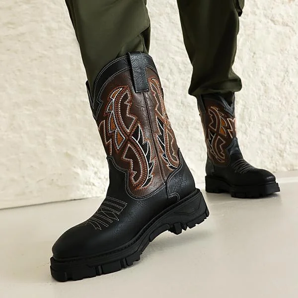 MEN'S ROUND TOE EMBROIDERED RETRO BOOTS 99333081YL