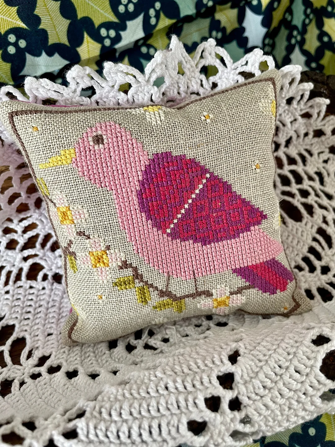Let this cheerful bird bring color and charm to your stitching table — a perfect project to welcome spring.